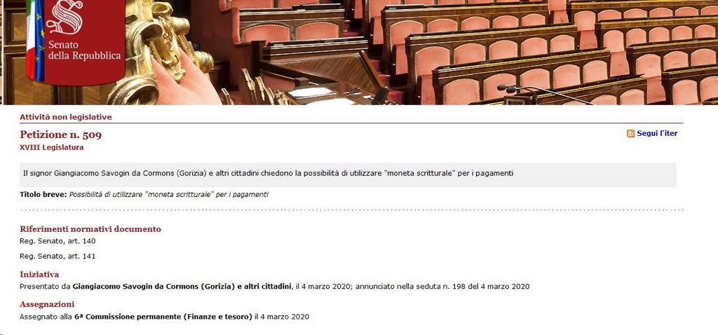 04/03/2020 – Senato Della Repubblica Petizione 509 GSTVB